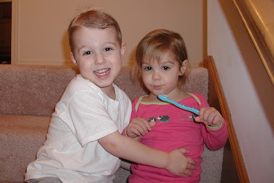 Cody can talk Anna into sharing just about anything with him. Anna has such a sweet, giving spirit, accompanied with her young age, that she really enjoys giving things away to her brother. However, Cody had to get creative this week. Anna and Cody were given some Girl Scout cookies from a neighbor as a thank you for taking care of her fish and dog for a few days while she is away. This was a very special treat for Anna, so when Cody finished a couple of his cookies one day at snacktime, he decided to ask Anna for one of hers. I overheard her saying politely, “No. My cookie.” I later heard Cody saying excitedly to Anna, “Anna, do you want to play a game?!” He kept on asking her with a great amount of zeal. Anna, however, was trying not to look at him, so I asked him what the game was. He told me in a very upbeat tone as if to try to convince me, “The game is when Anna TAKES the cookie and POINTS it into my mouth!” I think we are going to have to keep an eye on this guy!
