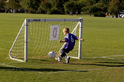 Cody’s fall soccer wrapped up several months ago, but I wanted to share a couple photos taken by my dad when he and Grandma, Uncle Wade, and Aunt Kelli came for a visit. The most significant change this season was how aggressive and confident Cody was during games. He was not at all timid to get in there and claim the ball. He loves soccer, and I think it is a great sport for him as it requires a lot of running, something that he totally enjoys. He actually would try to chase cars as they would come down our street this summer. This challenge was not something that I felt was the best means of fun, so, needless to say, I discouraged that type of play ASAP. 🙂 BUT I will say, he is pretty fast! The last game of the season almost canceled due to rain. However, the fields stayed playable but only one other player showed up despite the few sprinkles we were getting. Cody and this other boy played two on two with the other team. The other team was very good, as we played them in a past game, but Cody and Drew made them work really hard. So many people came up to me to tell me what a great player Cody was…the other team could rotate other players in, but Cody and Drew played the entirety by themselves. They got quite the workout and gave their very best, and after each play Cody made everyone laugh by asking, “Is it snacktime yet?” Great job, Purple Tiger! I had fun cheering you on!