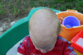 Dylan decided to get some good use out of his new Toy Story bucket and Shovel he received from Aunt Kelli and Uncle Wade for Easter. We tried it out in our sandbox. He loved it, maybe a little too much! He thoroughly enjoyed throwing sand up in the air. Needless to say, bathtime came next. He probably had half the sandbox in his hair!
