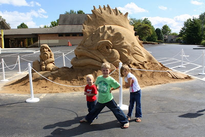 There is a local sand sculptor that for the past few summers has been displaying his art in the parking lot of an area church. The intricate detail is really quite impressive. We went last year and then again this summer. They have a sand box off to the side to allow children to practice making their own sand creations. Cody, Anna, and Dylan love playing in it! Cody and Anna struck a pose in the last photo. The super-hero stance seems to be Cody’s signature pose right now. I’m not sure what’s with Anna’s rock star/gangster stance!