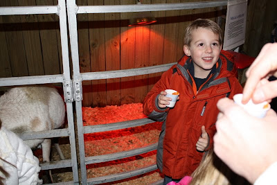 We just got back from seeing the light display at Lady of the Snow in Illinois. Dylan sat in the front seat with me and waved to people outside the car and shouted “Hi” to them, never mind that the windows were rolled! Cody and Anna got to ride a camel for the first time which they thought was pretty neat. And Dylan got to join in on the fun by feeding the animals in the petting zoo some sliced carrots. Anna was shocked when one of the animals, the deer, stole her cup from her and began munching its entire contents. She thought this was so funny. It was a fun family outing. We toppped it off with some cinnamon kettle corn, which Anna and I thought tasted too much like coffee, therefore, leaving the rest of the bag to the boys. I really feel like I should like kettle corn, but it’s just not happening, folks, not this year.
