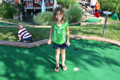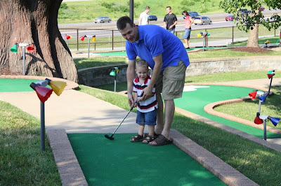 Today was Father’s Day, and Shawn’s birthday. We had a fun time celebrating. We opened presents at home in the morning and then headed out to a new restaurant for lunch. I didn’t get many photos of Abigail because every time I had my camera out she was in her stroller which seems to lull her to sleep, and you know what they say about sleeping babies! I think my favorite photo I got today was of Dylan eating his ice cream sundae he made from the dessert bar. I caught him as he was telling us how cold it was…I love this image because Dylan reacts this way any time he finds something particularly cold! Afterwards, we played miniature golf and watched a little batting practice. Cody wanted to bat, but he had on flip flops. The rules said tennis shoes must be worn, so we will come back another day. It was a wonderful day to celebrate the wonderful man in our lives…We love you, Shawn!